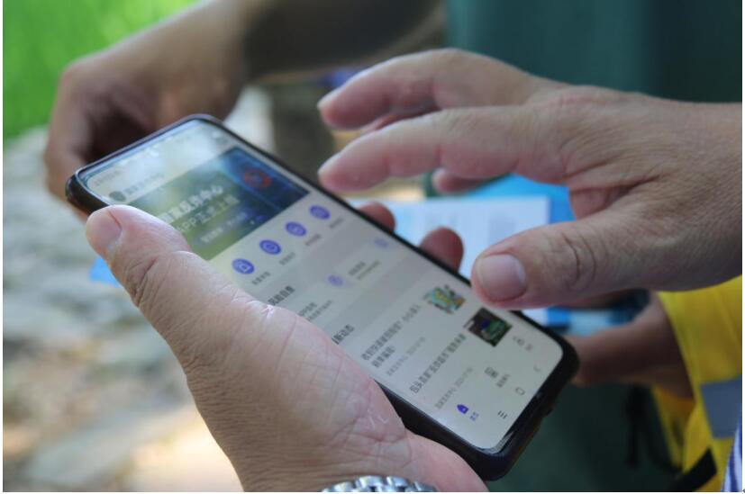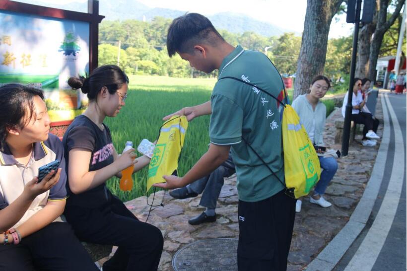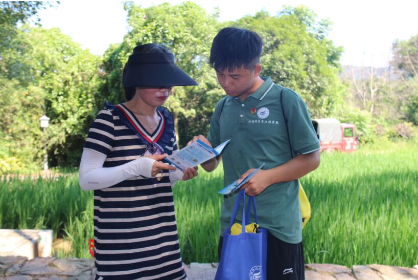 图为暑期社会实践团成员在与游客宣传国家反炸app