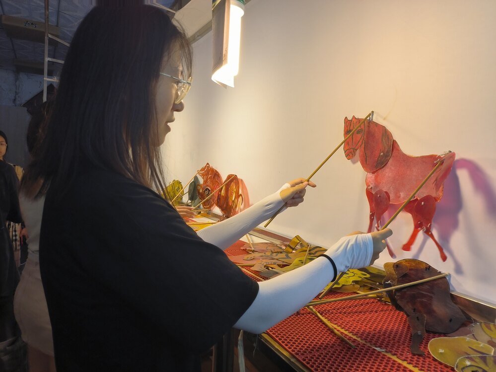(成员体验皮影戏,王嘉仪摄)