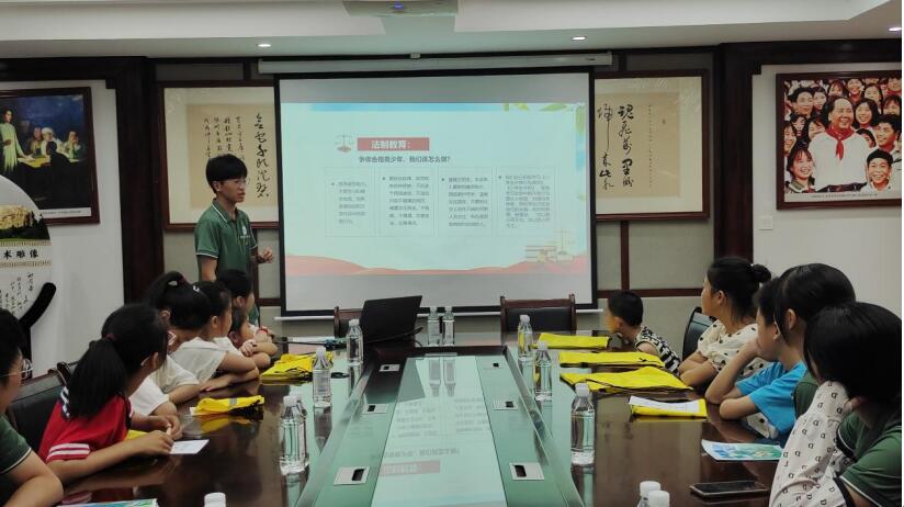 图为社会实践团成员在介绍与未成年人相关的法律