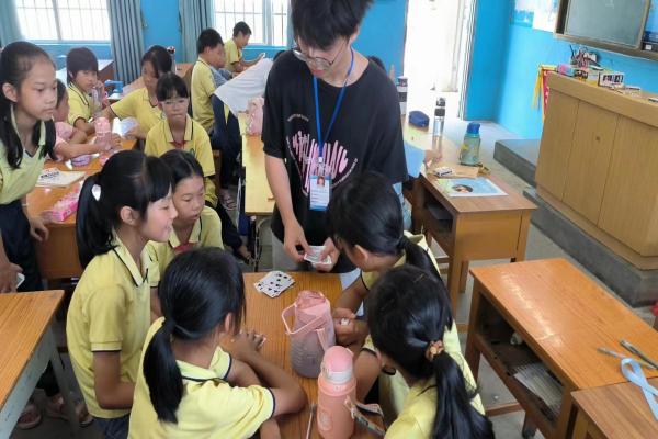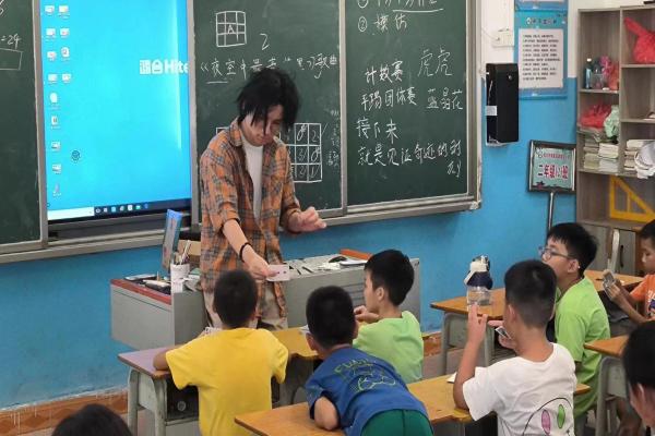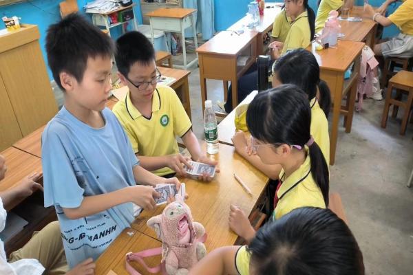 2023年7月12日,数计学院“晨曦”社会实践队在吴川市塘头村塘头小学二年级开展“魔幻之旅”魔术课。