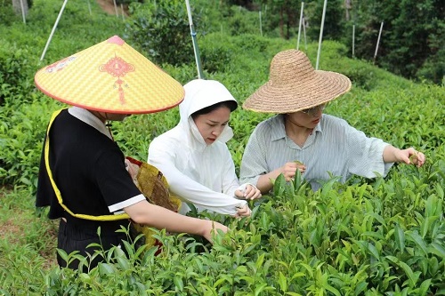 图3实践团成员助农采茶