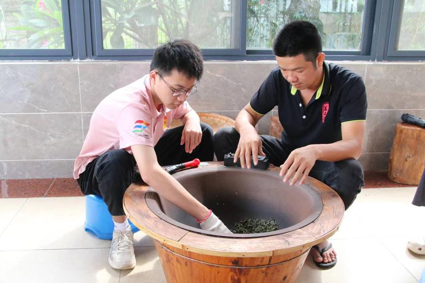 图为青衿志队员上手尝试炒茶 程白云 摄