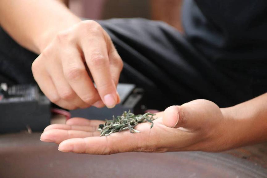 厂长为队员们示范时强调,手工制茶中的炒茶不仅仅只是炒茶,而是要搭配着揉茶反复进行的操作,两道工序相辅相成。晒青后的茶叶在经过第一遍的杀青之后,茶叶中含有的水分就减少了许多,此时的茶叶显得干瘪无味,需对其进行揉搓,这既是为了使茶叶中尚余的水分充分激发出来,也是为了揉出茶叶的藏存于内的香味。事实上,不同的茶种有不同的炒茶条件及要求,需要注意控制温度及时间,如若有任一方面做得不到位都会影响后续泡出来的茶水的味道和口感。专家给队员们进行炒茶示范用的是金萱茶,需进行三次翻炒和揉搓。