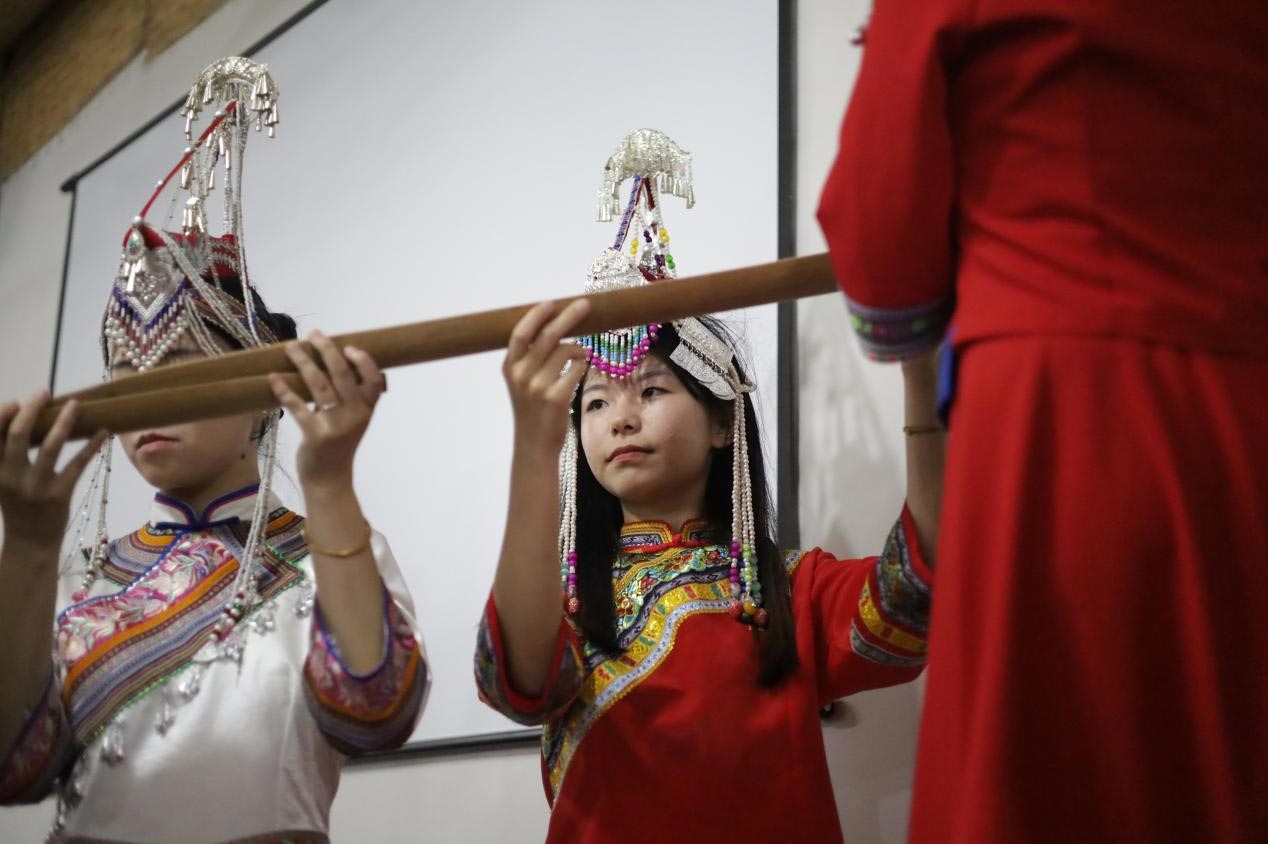 为进一步感知畲族文化的独特风采,团队来到当地的特色山庄——凤凰山庄,进行学习调研。在这里,酒坊中色赤如丹的红曲酒散发出古老而醇厚的酒香,引导团队成员学习酿造程序、了解历史文化,同时也引发大家对于红曲酒业当下面临的难贮存、难外销困境的思考;在这里,庄主悠扬的歌声回荡,畲族民歌的独特韵味动人心弦、引人回味,而传承人才的青黄不接令人惋惜;在这里,当红艳艳的酒裹挟着酒香从坛中流入长竹板,高山流水长桌宴便拥有了灵魂,这令人澎湃的餐桌仪式使团队成员感受到畲族人民对自然的敬畏和对生活的热爱。团队成员董承祺和王煜骐感慨:“他们的笑容、他们的歌声、他们的习俗,都仿佛有一种魔力,让我们陷入了这个美丽的故事中,不愿离开。”