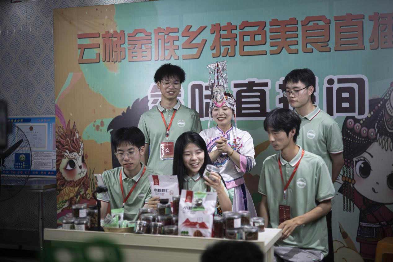 “像山核桃这样的农产品还是以外销粗加工为主,并没有形成自身品牌产业链。与此同时,当地农产品销售方式也较为原始,并没有吃到互联网红利。”高先生在采访中提出的发展困境萦绕在团队成员心头。为扬青春之风、助乡村振兴,充分发挥互联网优势,推动乡村经济与互联网发展相融合,团队踏进畲族特产中心的“畲味直播间”,参与了一波“直播带货”,以期助力畲乡特色美食走出畲乡,迸发乡村振兴的新活力。