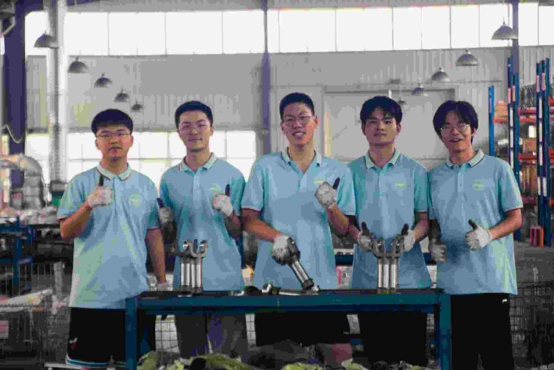 行之愈笃,则知之益明。经过参观实习,实践团同学对生产流程有了全面的认识。随后在杨部长的示范下,同学们躬身实践,体验装配环节:将滑动叉、油封总成、后轴头、油封盖等系列零件按照一定顺序进行组装。由于经验不足,同学们在开始阶段迟迟摸不准后轴头与滑动叉之间的纹路;同时,对于不经常劳作的大学生来说,克服操作沉重的铁质零件所带来的疲惫感也成为了一个不小的挑战。然,工大学子不怕脏累:纵使汗水浸湿队服队服,机油布满双手,同学们仍保持着工作的热情,在闷热的厂房中,在机械运作的轰鸣声中不断摸索经验,严谨作业。当目送一筐筐装配后的零件被叉车运往下一道工序的那一刻,同学们即觉得辛苦也甜进了心头!
