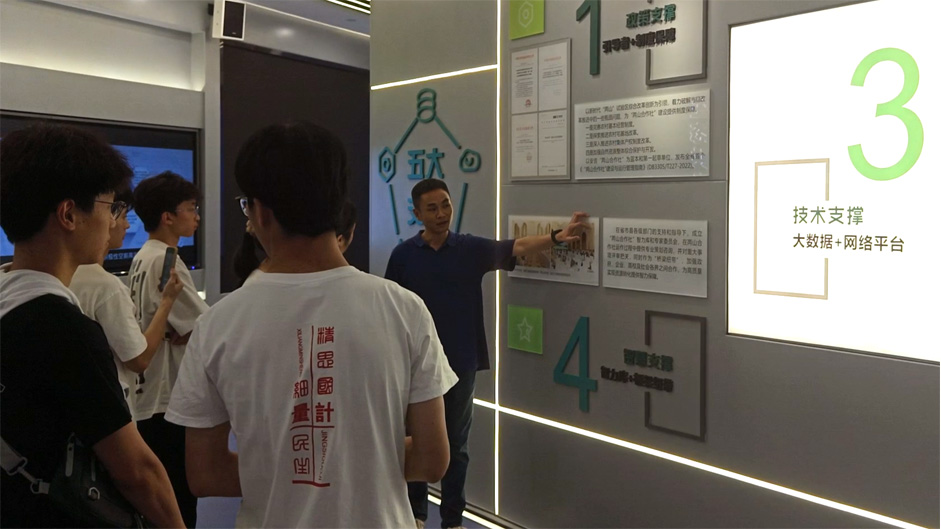 图为罗煜先为队员介绍两山合作社 孙鹏飞 摄