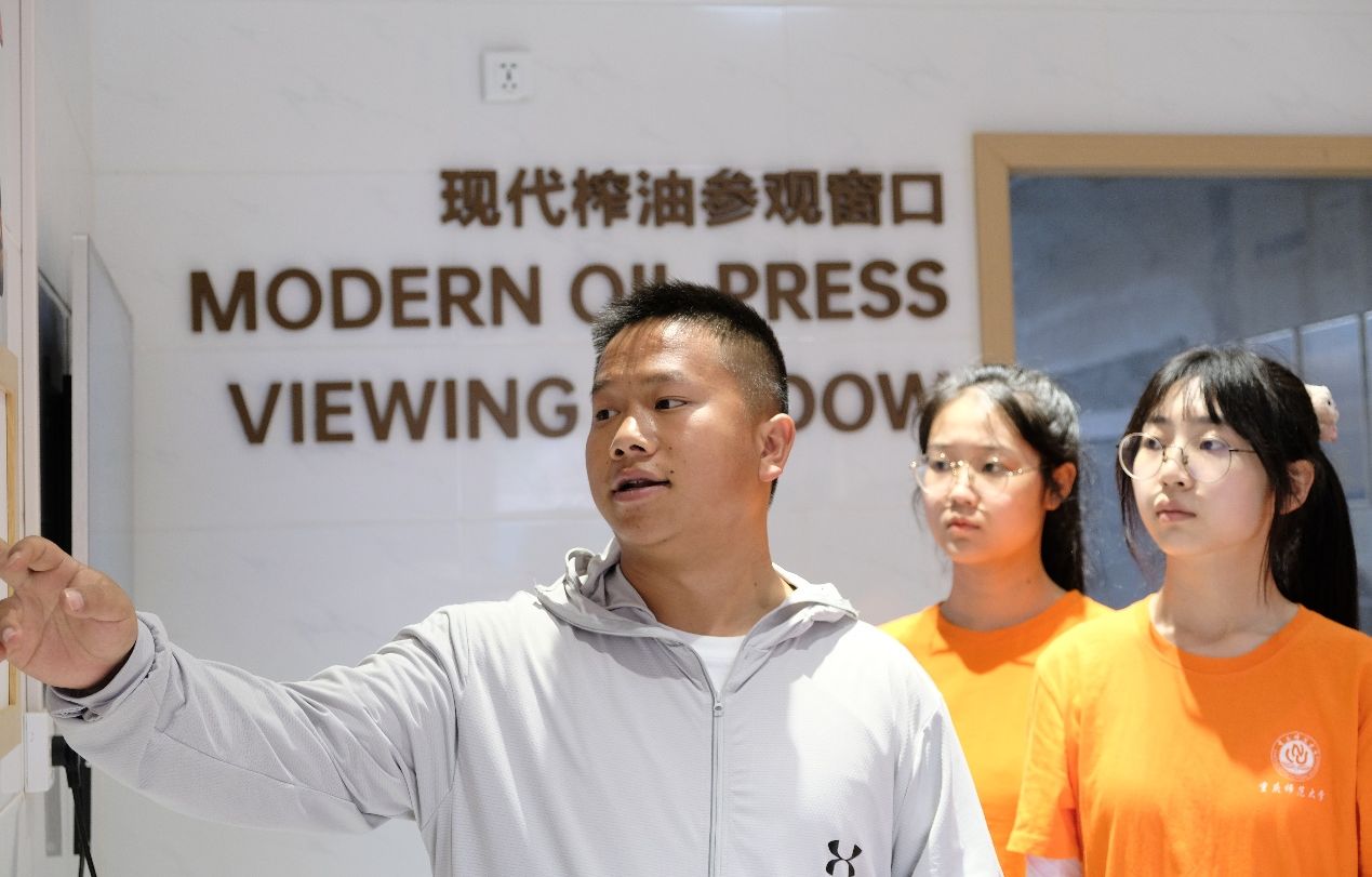 在聆听党史故事,感受红色精神后,下午16时,杨云林书记带领实践团成员深入羊古缭油坊。实践团成员通过了解和体验菜籽油压榨过程,探寻一朵油菜花背后的致富精神。