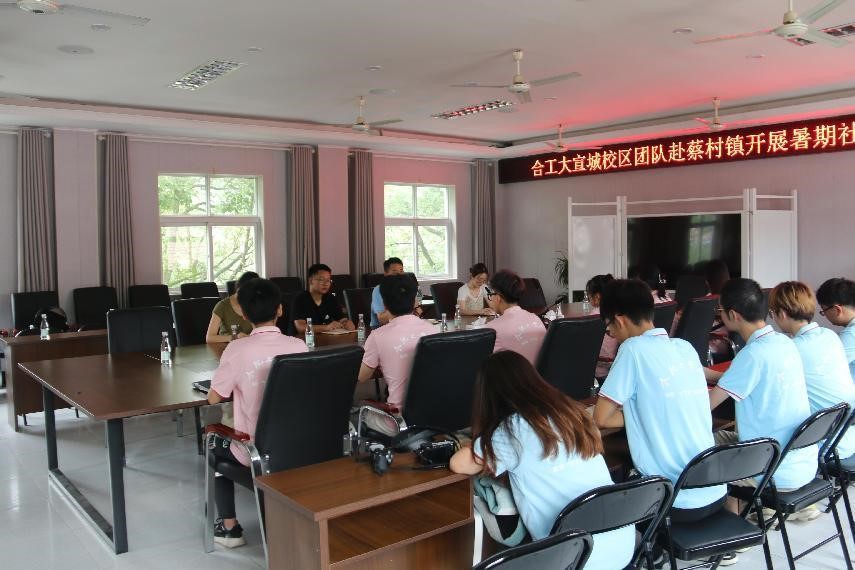 欢迎仪式中,团队队员与蔡村镇领导开会