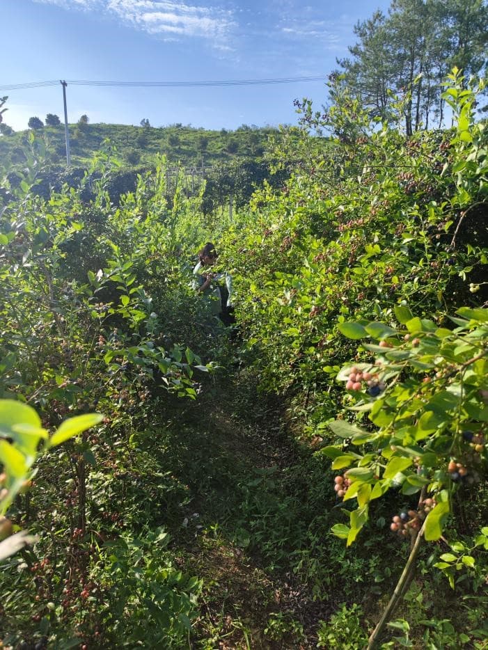 李园长带我们对于蓝莓进行采摘,因为海拔差异这个季节原本下市的蓝莓在山上依然各个饱满,在这个纯天然的蓝莓我们感受到了蓝莓采摘的快乐,这里不同于大棚而是无污染无农药,蓝莓树层层排列,生态园那份大自然气息沁人心中,带来阵阵果香,更是田园之乐。对于游客来说,无论是放松还是休闲都是好去处。