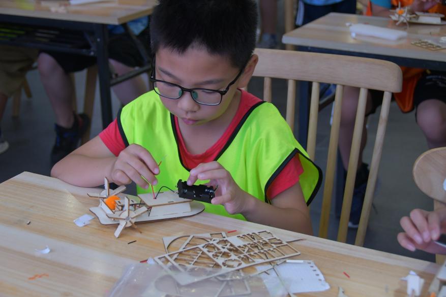 下午,苏颂习堂实践队带领学生制作“电动明轮船”。在研学导师的讲解下,学生了解了船的起源和发展,学习了明轮船的运作原理,并体验了组装电动明轮船的乐趣。在动手过程中,学生们学思践悟,逐步实现从理论到实践的迁移;知行合一,不断解放思想深化学习。