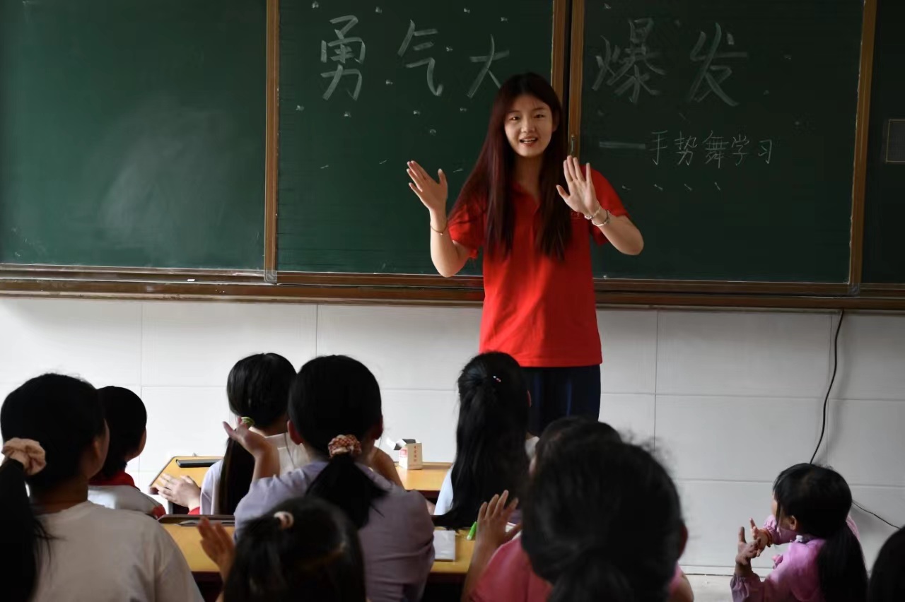 由于孩子们人数较多并且分属不同年级,实践队采取了分班教学,同时实践队员也相应分成两组,每天下午对孩子们进行课业辅导,两组队员因材施教,对于低年级孩子主要辅导他们完成暑假作业,引领他们学习一些课余小知识,丰富孩子们的认知,对于高年级孩子实践队成员不仅辅导他们完成课业作业,而且对于他们将要学习的内容进行讲解,起到预习作用。在休息时间,实践队表演了手势舞,丰富了偏远山区孩子们假期娱乐生活。实践队帮助孩子们找到学习的乐趣,树立起文化自信,更好的承担起传承乡风文明的责任。在祥瑞小学的实践使团队成员更加深刻的认识到,关爱留守儿童不仅仅是给他们提供物质帮助、心理辅导和情感关怀,更重要的是为他们提供更多接触教育的机会和更大的发展平台,树立正确的观念,以真正的促进留守儿童健康成长。