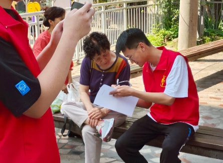 图为我们正在指导老人完成防诈相关问卷,通过答题的方式提高老人的防电诈意识。通讯员 张凯 供图。