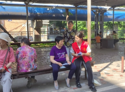 图为团队人员正在倾听老人对防电诈的看法,老人平时会使用智能手机,针对次点,我们又另外给她讲了智能手机防诈。通讯员 王汉阳 供图。