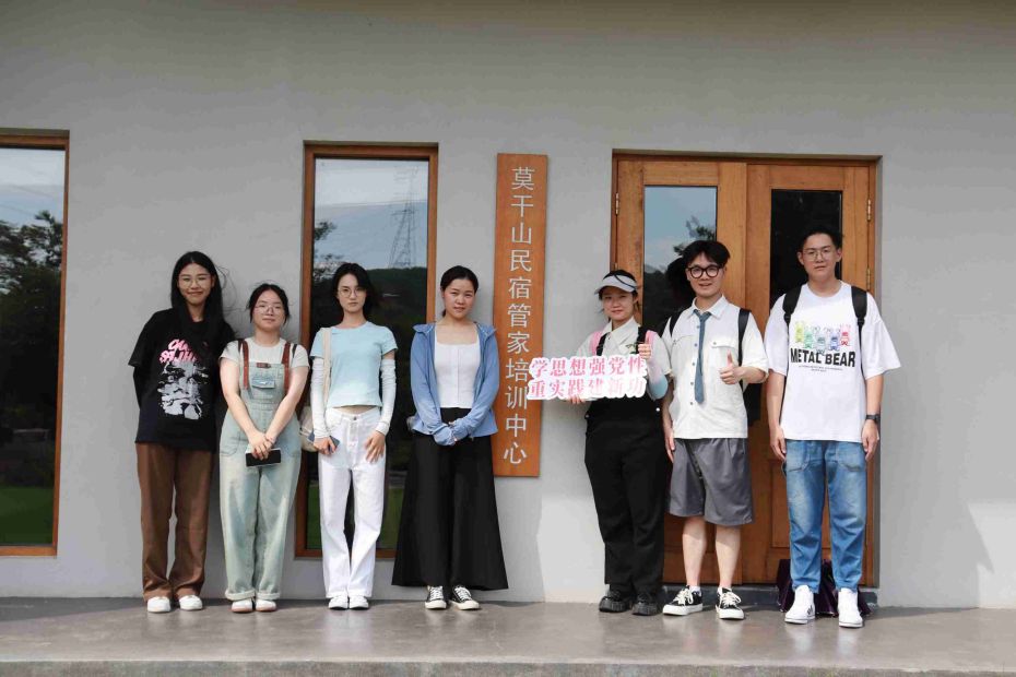 随后,实践团来到五四村莫干山民宿管家培训学校。这所学校是国内第一家有认证标准的、有办学资质的民宿管家全面机构。目前已开展线下培训52期,培训乡村民宿从业经营者3000千多人,其助力民宿产业走上规范化标准化发展道路的初心正不断得到实现。