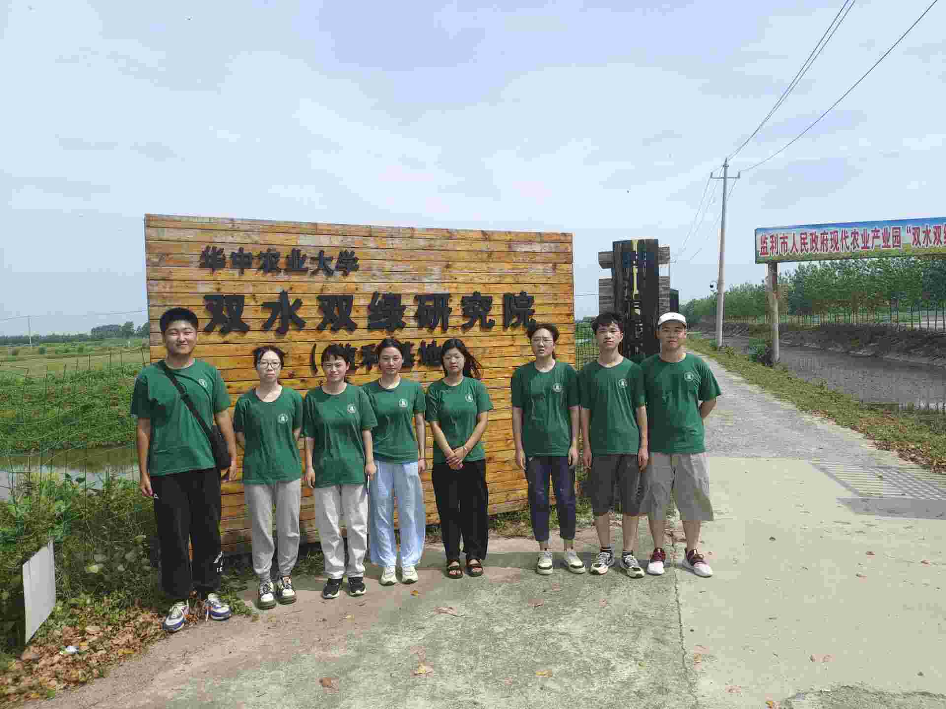 - 为学习了解双水双绿的种养模式和其现实意义,华中农业大学赴湖北省监利新沟暑期社会实践团来到本校的双水双绿研究基地实地考察。