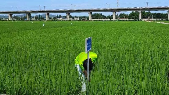 对水稻中试基地技术与管理有了一定了解过后,实践队员在中试基地人员的带领下下到中试基地中对水稻品种进行采样观察研究。一望无际的中试基地中水稻品种繁多,中试基地人员告诉实践队队员:“我们的研究成果要靠天,就像农民靠天吃饭一样,长期干旱或雨水都会对研究成果造成不同程度的影响。”让实践队队员更加坚信人与自然和谐的重要性。