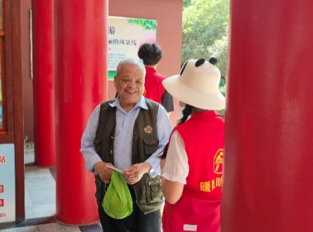 图为我们在人民公园内与路人沟通交流防诈知识,老人使用老年机,我们仍需给其做防诈宣传并发放宣传单。通讯员 刘慧妹 供图。
