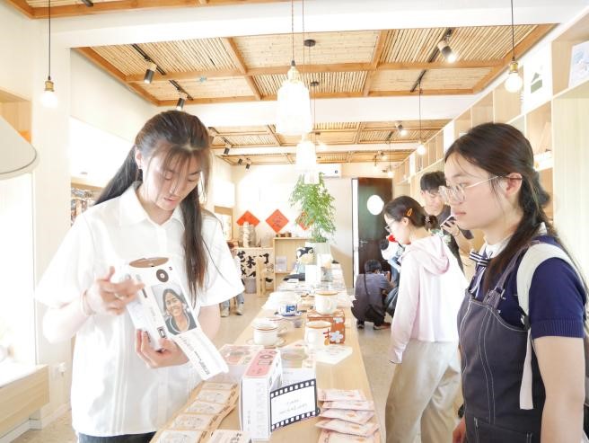 实践团成员沿着天荒坪镇的主街一路参观交流,在“青年在村·生活灵感便利店”感受青年灵感与乡村的思维碰撞。九间主街商铺相联通,成了在村青年灵感的集聚地。在这个场域里的每一次销售行为,都将捐1元钱给“天荒坪镇小助大爱公益基金”,并通过这一渠道帮助有需要的人。因此,生活灵感便利店不只是卖货,更期待助推公民捐赠行为的养成。同时,便利店内众多有趣的文创用品,对外展现着青年的idea,展示着青年感知世界的N种方式。