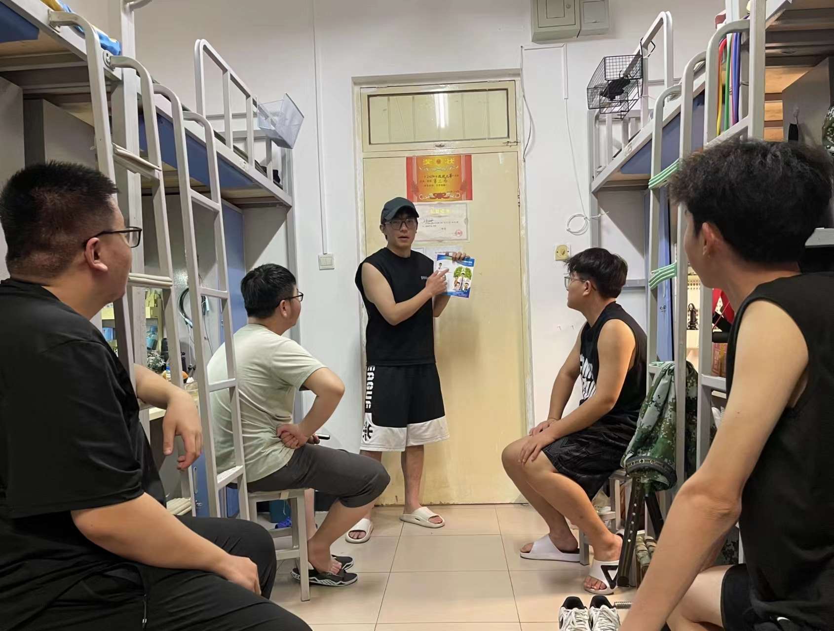 宿舍区,志愿者们分散到各个寝室积极开展宣讲活动。在这一方小小的寝室里,大家面对面深入交流,志愿者热情地解答同学们提出的问题,做到沟通“点对点,心连心”。活动最后,志愿者呼吁大家大家养成良好的生活习惯,定期体检,做到疾病早发现、早治疗。