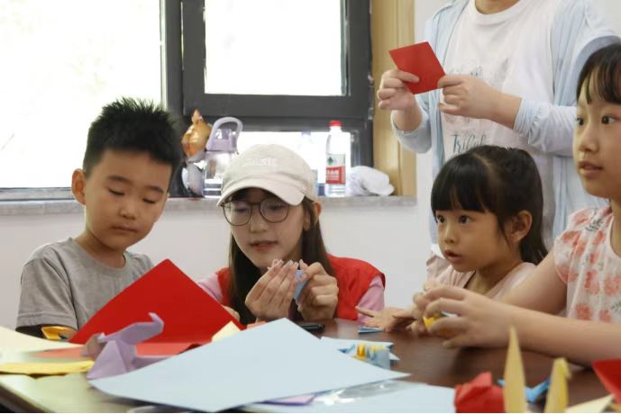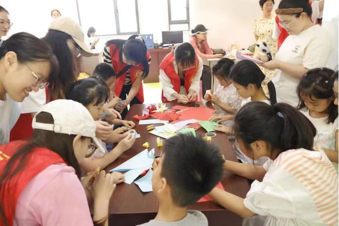 为贯彻执行共青团山东省委、山东省教育厅联合印发的《关于开展“百万大学生进社区”社会实践的工作方案》,丰富社区青少年的课余生活,培养他们的动手、动脑能力,弘扬志愿服务精神,7月16日上午,山东建筑大学管理工程学院微光行动团队联合历城区港沟街道溪山居社区,组织辖区儿童在溪山居社区党群服务中心开展“童心飞扬,纸艺绽放”趣味折纸活动。