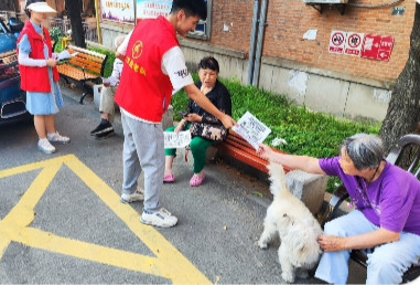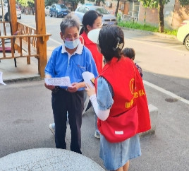 图为离开袁家沟途中遇到的在路边闲坐的老人,我们积极上前为他们讲述防诈知识,并递出宣传单作为参考。通讯员 柳仪卿 供图。
