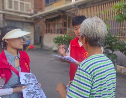 图为我们细心与老人沟通,得知老人有防诈经验后,展开了更深入的交流,并完成了答卷。通讯员 张凯 供图。