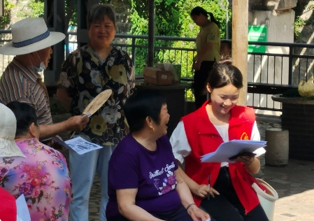 图为上午,前往袁家沟,队伍众人一起与老人交流,共同深化防诈知识,提高防诈意识。通讯员 石朗 供图。