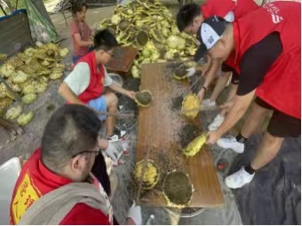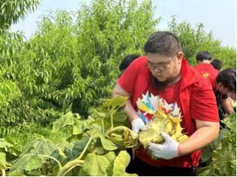 正值三夏农忙时,在前魏村的果园内,放眼望去,满眼青翠,胭红点点。团队成员在村民的讲解下,认真了解学习了果园中的果树分类、如何判断果实成熟度以及采摘的注意事项,随后大家迎着阳光穿梭在树林之中,分工明确,相互配合,干得热火朝天。采摘结束后,团队成员和村民一起坐在果树下,吃着刚刚采摘下来的桃子,听村民讲述他们的所见所闻,品味到的尽是甘甜。