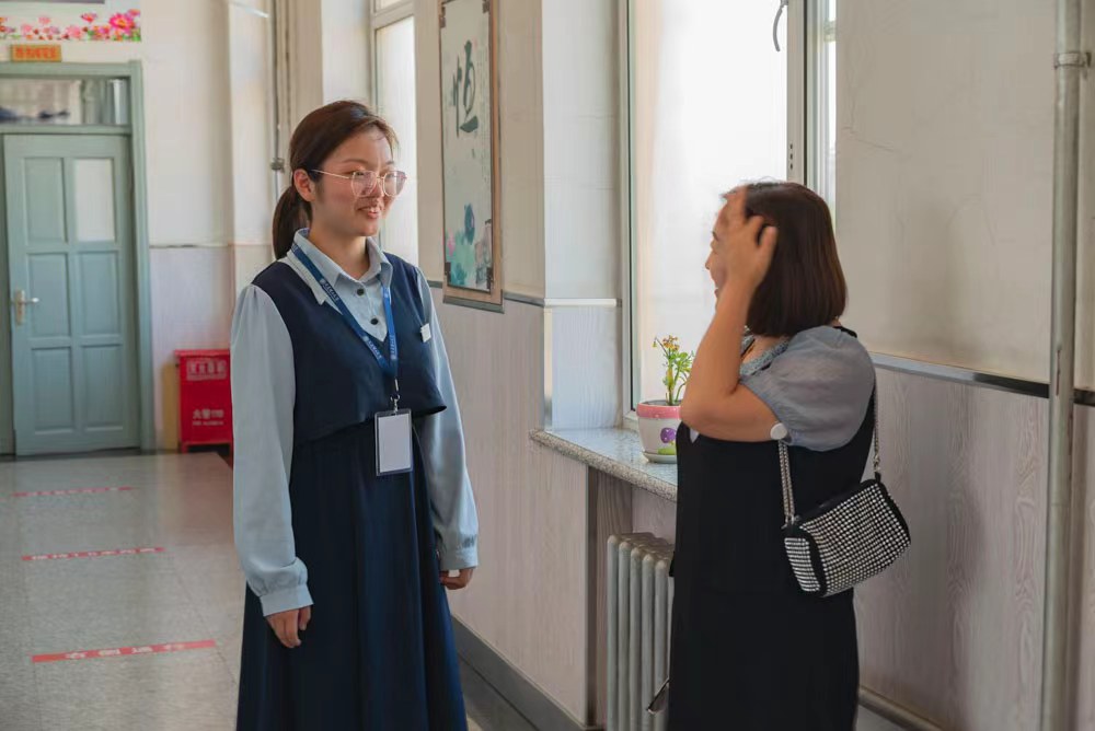 在7月16日到达漠河站后,志愿者们坐车前往漠河市立人学校。简单放好行李后,志愿者们进行了休整并进行了备课。支教的第一天,太阳已经高高地升起,大学生志愿者们早早来到学校,受到了校方的热烈欢迎,之后开始整理办公室,孩子们准备了丰富多彩的教学材料,与老师进行了讲课进度的对接后马上开始了讲课。在教室里,面对来自远方的老师,孩子们很快与老师打成一团,在盛夏的蝉鸣声中,教室萦绕着孩子们的读书声和爽朗的笑声。虽然面临恶劣的气候和基础设施条件的限制,但这些大学生志愿者们依然充满热情地鼓励孩子们积极参与课堂活动,激发他们的学习兴趣。