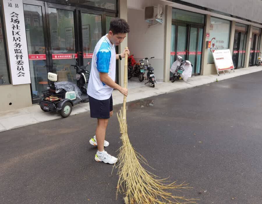 图为实践队员在打扫党群服务中心广场 通讯员 张艺萱 摄