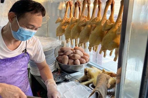 在完成对糖水的调研,实践队队员们来到地方名菜香油鸡处展开调研。