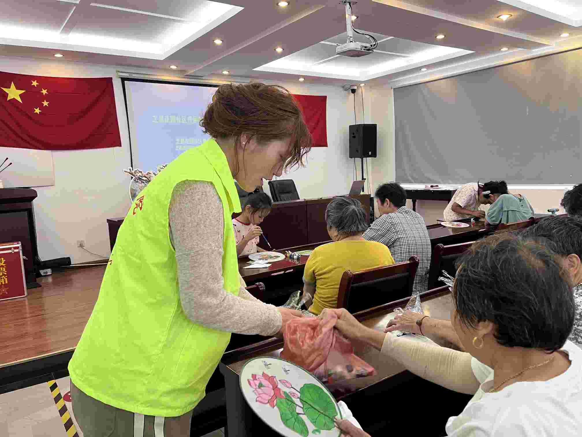 为丰富居民社区文化生活,实践团联合芝嘉花园社区共同开展绘画团扇活动。活动现场,居民们在社区工作人员和实践团成员的帮助下,画得认真仔细,不时与周围人交流绘画心得。大家纷纷表示,手工绘制团扇活动热闹有趣,对于促进社区和谐非常有意义。