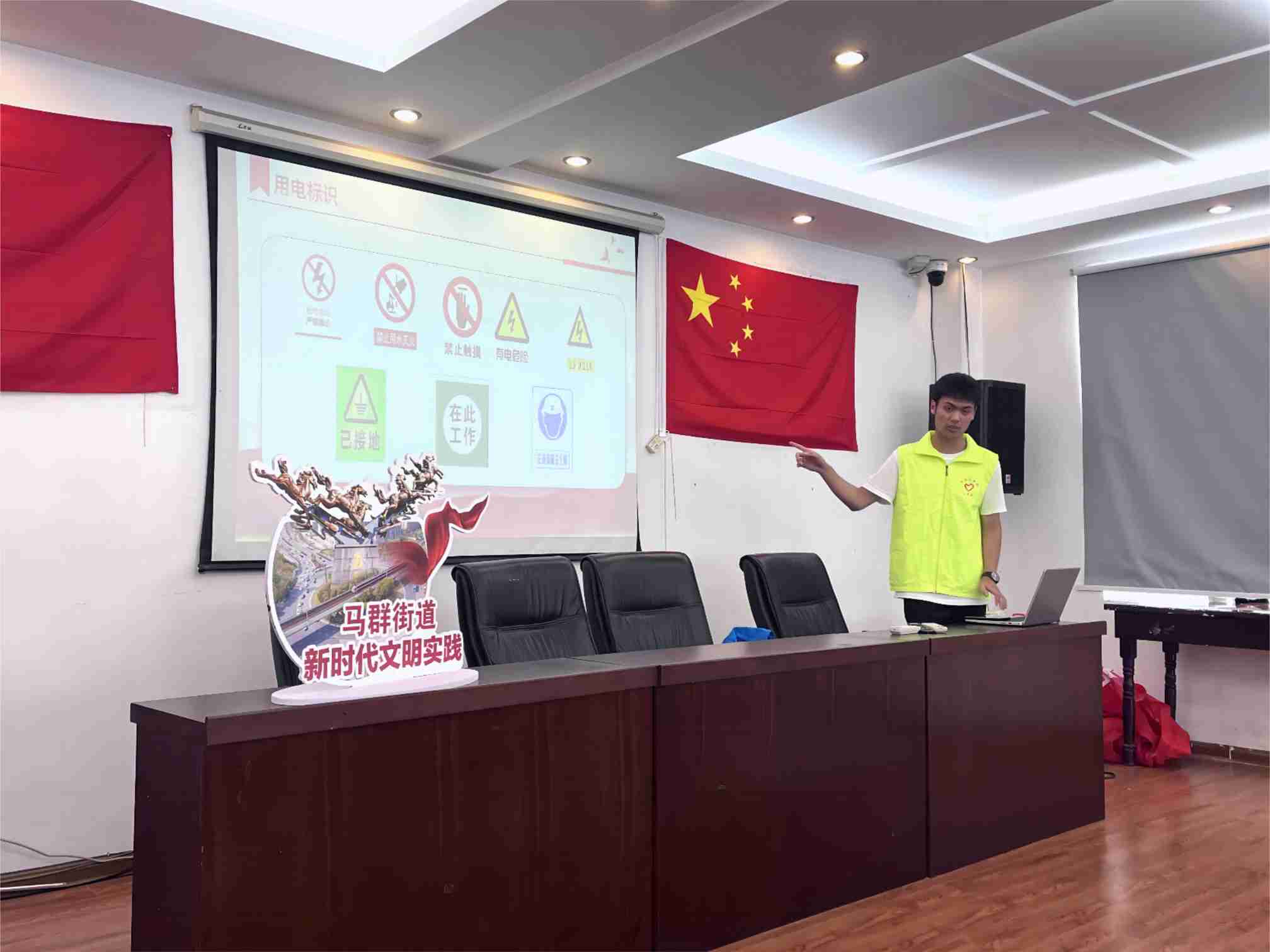 实践团成员深入芝嘉花园社区,发放安全用电知识宣传资料,以ppt的形式向居民展示安全用电标识等相关知识及发生事故时的正确处理方式,通过集中宣讲提高居民安全用电的意识,并对可能存在的隐患提出建议。
