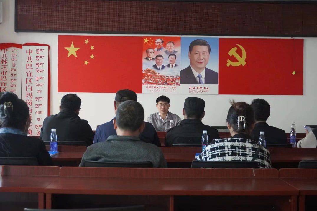 本网林芝7月6日电(通讯员 李梦蝶 曹正阳)党的二十大回顾总结了过去五年的工作和新时代十年的伟大变革,阐述了开辟马克思主义中国化时代化新境界、中国式现代化的中国特色和本质要求等重大问题,对全面建设社会主义现代化国家、全面推进中华民族伟大复兴进行了战略谋划,对统筹推进“五位一体”总体布局、协调推进“四个全面”战略布局作出了全面部署。落实党的二十大精神,推进党学宣讲,构建民族团结。2023年7月6日上午10时30分许,河南工业大学“郑在林芝·爱在公布”赴西藏社会实践团队的成员来到西藏自治区林芝市巴宜区白玛岗街道尼池社区开展以“奋进的二十大,中国式现代化建设中的新西藏”为主题的党学宣讲活动。