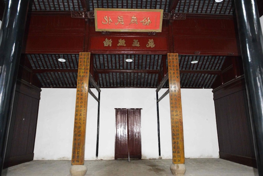 上联读山。白龙山寺院巍峨、引人入胜;砂山瞭望,南观太湖,北瞰长江;稷山“松连山径绿,花出杏村红”;定山更不失江阴境内最高峰的气度。下联读水。白蛇港、清溪河、亭子港流淌出周庄的水墨画卷。