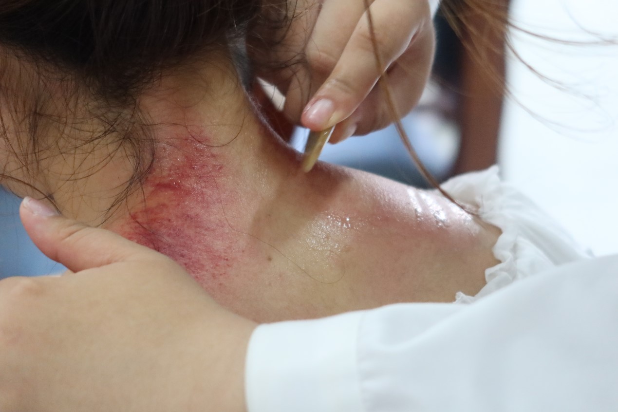 推拿、刮痧是极具中医特色的诊疗、保健手法之一,能够有效防病,增强体质,振奋精神,亦可增强身体抗病能力,促进疾病的恢复。队员们秉承着中医养生的传统手法,为有需要的社区居民提供了推拿、刮痧服务,帮助居民有效放松身心,促进血液循环。