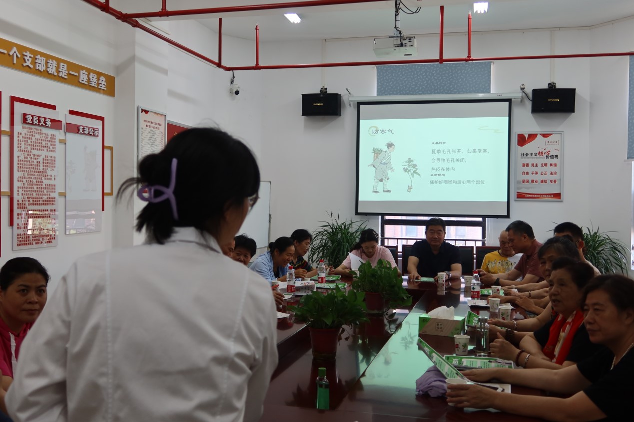 活动伊始,小队利用现代化多媒体手段及自身学习到的专业知识,通过现场宣讲的形式,将中医养生保健概念、常见健康问题及处理手段等内容深入传播到社区居民的心中。