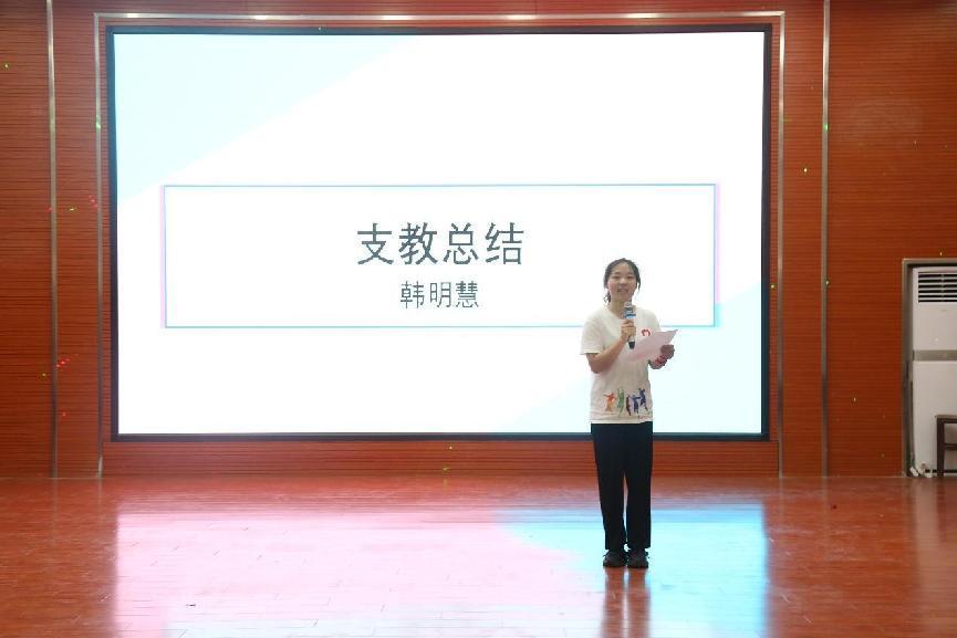 学生们的节目表演结束后,筑梦支教团“向远筑梦“分队队长韩明慧作为支教团代表发表对为期两周支教生活的内心感受。最后,支教团全体成员合唱《夜空中最亮的星》,彩色的气球在支教团成员手中摇曳,最后渐行渐远,本次文艺汇演也拉下帷幕。