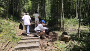 在观赏竹子的美景的同时,实践队员们还进行了竹林垃圾清理活动,利用自备的垃圾袋,弯着腰将竹林隐秘处的纸团、塑料袋、饮料瓶、白色塑料制品等各类垃圾进行捡拾清理。捡起那些遗落在林中的垃圾,做大自然的守护者,还竹山一片洁净环境。