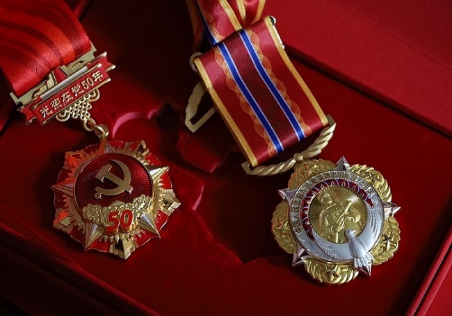 孙老指着数枚被擦拭得闪闪发光的勋章自豪地说:“这是党和国家对我的认可,我当兵就是为了报效国家。”这些徽章纪念着孙老的累累战功,他崇高的理想信念与伟大的爱国主义精神,如同一颗闪闪的红星,任凭时光流转,永远不曾褪色。他也希望年轻一辈能将这股精神继续传承下去,积极参军入伍,保家卫国“当兵虽然很苦,但是国家需要军人的守护,你们年轻人一定要积极入伍当兵,奉献自己,报效祖国。”