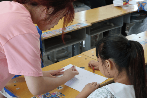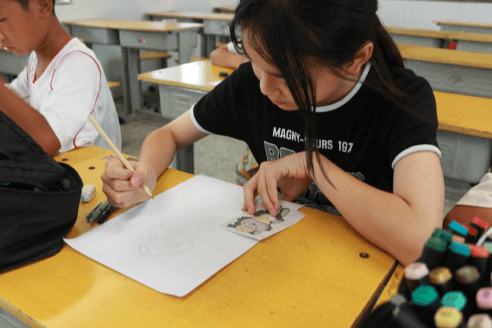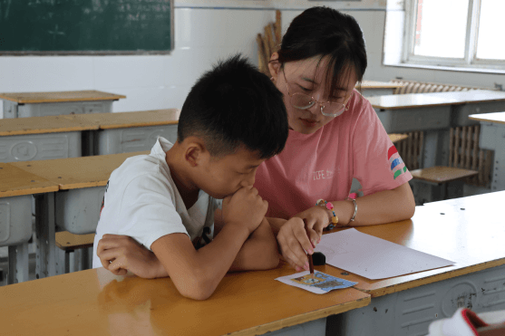 随后,实践团成员分为四个小组进入班级,分别带领着学生们绘画。队员们有条不紊的上课,一张张上课的照片,生动形象的展示出了实践队员与学生之间教与学的温馨氛围。队员们秉承着专业态度在出色地完成教育教学工作的同时也为学生打开了一个崭新的视野,拓展学生们的思路,激励学生努力点亮自己的梦想。