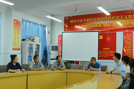 图为庞村明德小学各领导与“艺”伴童心暑期社会实践团各指导老师沟通实践内容