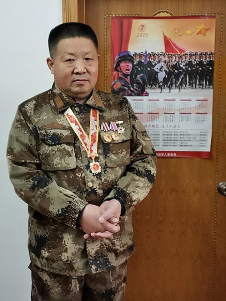 图为老兵孙志林身穿军装佩戴奖章的图片