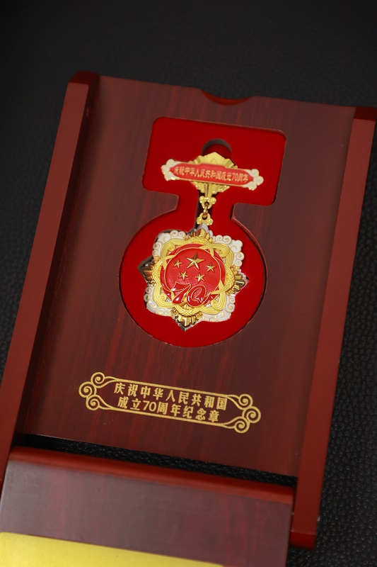 图为老兵孙志林的庆祝中华人民共和国成立70周年纪念章