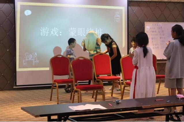 为进一步加深学生对爱眼重要性的认识,增强课堂的趣味性,樊候晨在课堂中开展了“蒙眼贴五官”和“蒙眼绕桩”两项趣味活动。在“蒙眼贴五官”的活动中,学生们被分成了蒙眼粘贴组和台下指导组。台下的同学们热情高涨,大声引导蒙眼组将“五官”粘贴到合适的位置。蒙眼组同学们只能够听从来自台下同学发出的“上下左右”提示语完成任务,常常出现“五官大挪移”的笑话。两次游戏旨在让学生直观地感受视力障碍带来的不便,加深了学生的爱眼护眼意识,使学生学会如何关心和帮助盲人。