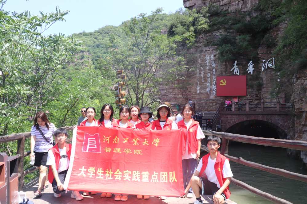 29日下午,各成员坐车前往红旗渠青年洞。青年洞因参加凿洞的突击队是从全县民工中抽调出来的300名优秀青年而得名。红旗渠要从陡峭如切的狼牙山悬崖绝壁上穿过,必须凿通一条长达600多米的隧洞。青年洞是红旗渠总干渠主要工程之一,坚硬如钢的石英砂石,一锤下去,只能留下一个斑点。正是在这种如同愚公移山般的精神支撑下,民工们仅仅用了一年多的时间就将山洞凿通。各成员到达山顶后,在保证安全的情况下,走过连接两座山头的攀崖悬壁“凌空栈道”,可体现艰苦创业的雄心壮志。行至胆战心惊“铁索桥”,可凌空倚云,飘若天仙。爬山至天下一绝“一线天”有胜黄山,峨媚之誉。成员们用一步步丈量红旗渠的土地,亲身体验红旗渠精神之宏伟、决心之坚定。