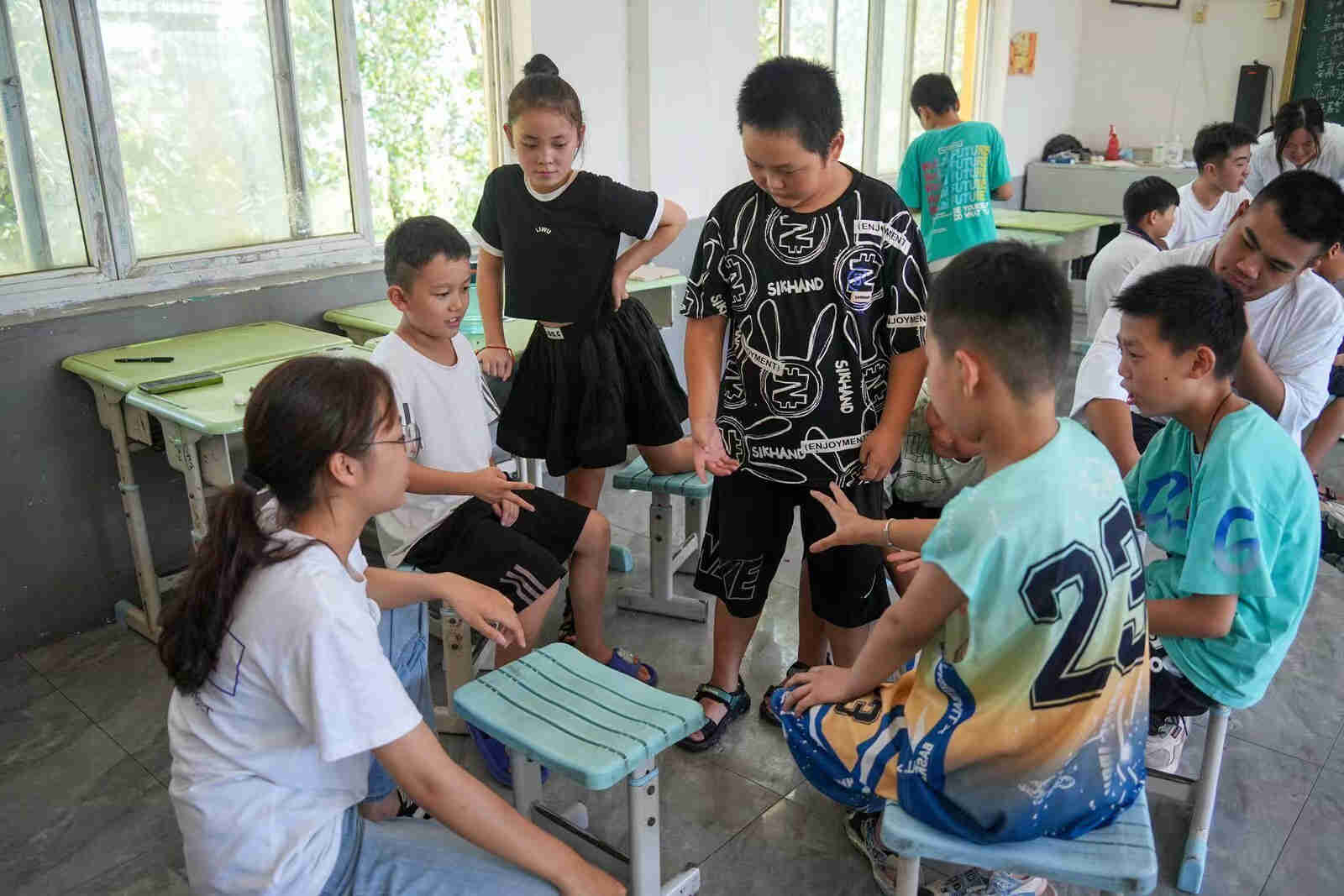 2023年8月4日,中国石油大学(华东)向阳花望曦队夏令营顺利开营。开营仪式集体会议之后,望曦队三个营的负责人刘相辰、汪雨娴、杨永勋分别带领各自营员小朋友前往教室进行开营活动,帮助小朋友熟悉适应夏令营。
