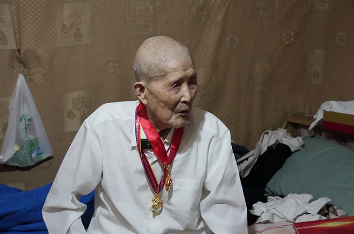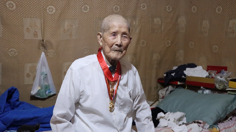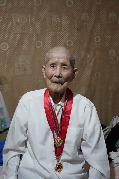 图为王阿虎佩戴奖章