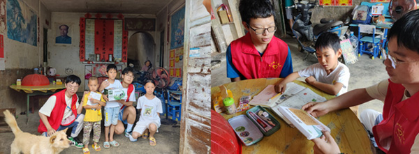 实践队员们带着一些温暖的物品(包括生活和学习物品),到达了留守儿童家中。在儿童家中,队员们与小朋友们聊天交流,了解留守儿童的基本情况,并为其辅导作业。在此过程中,队员们了解到,他们的父母远赴广州等地务工,无法经常陪伴在他们身边。而年轻的队员们带着阳光和朝气,和孩子们度过了短暂却温馨的一段时光,他们将对留守儿童家庭的关爱力量延伸到了现实生活中。